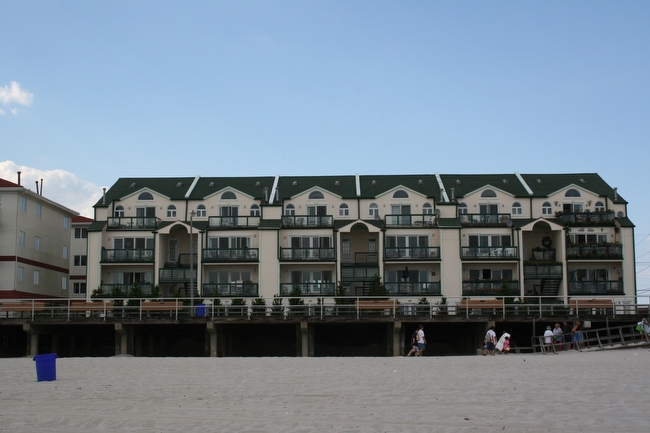 The South Beach Landing townhouses, recently built in 1997, combine the luxury of boardwalk and oceanfront living with the spaciousness of a single family home. The complex is immediately recognizable by its unique green terra cotta roofs, which contrast to the red roofs of its sister townhouse to the west, the Ocean Villas.